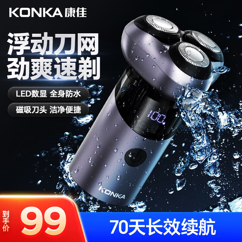 康佳电动剃须刀男士刮胡须刀须刨三刀头迷你剃须刀便携生日节日礼物送男友送老公送爸爸父亲 磁吸刀头mini便携