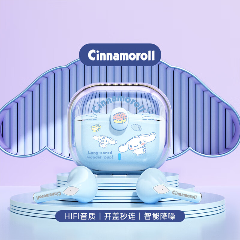 三丽鸥Hellokitty联名真无线蓝牙耳机凯蒂猫库洛米半入耳式音乐高清降噪运动游戏学生儿童卡通可爱礼物 蓝色【玉桂狗】 适用华为鸿蒙安卓苹果oppo