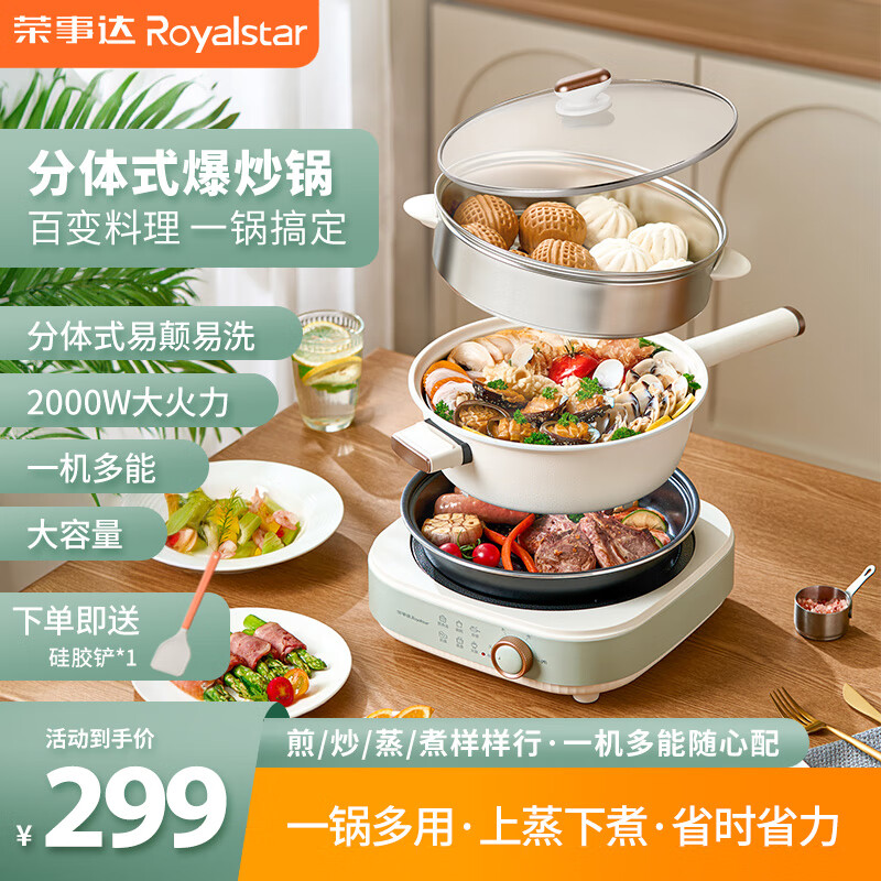 荣事达(Royalstar)分体式电炒锅火锅可拆洗家用多功能电火锅大容量电煮锅电炒锅多功能不粘煎烤锅 5L 分体式【单机+炒锅+蒸笼+烤盘】爆炒