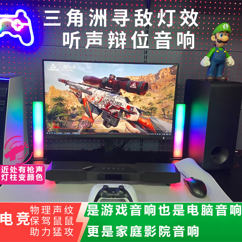 IRONSIMITH百搭桌面电脑家庭影院音乐音箱2.1声道FPS电竞游戏三角洲听声辩位低音炮台式机笔记本麦克风小音响 【三周洲标准版】音响套装+RGB灯柱 独立低音炮