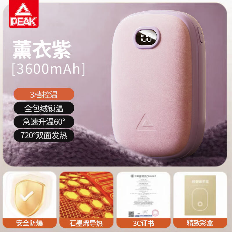 匹克【2025新款】石墨烯恒温暖手宝 随身防爆迷你 充电宝二合一 羊羔绒持续温暖 智能控温带数显 紫色【双向快充-NTC防爆防摔】精选羊羔绒/便携