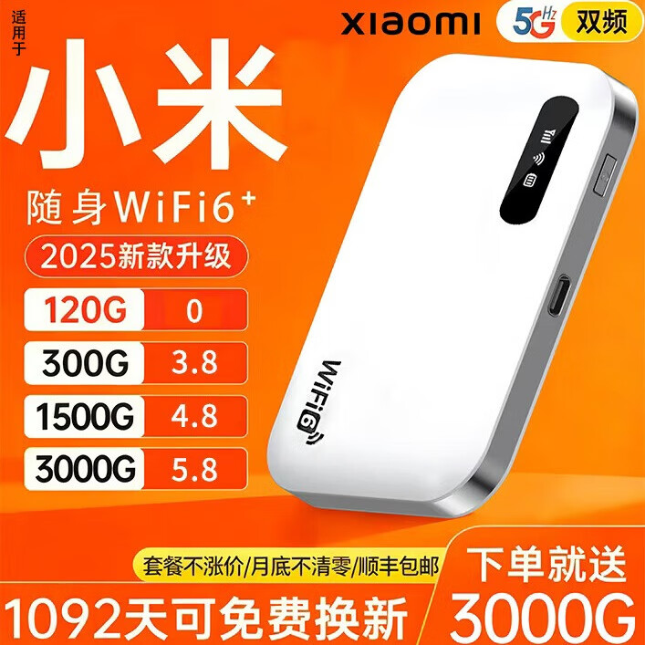 小米优选2025款移动随身5G无线网络无限流量千兆穿墙王无线路由器 5G三网通【极速版】赠送3000G