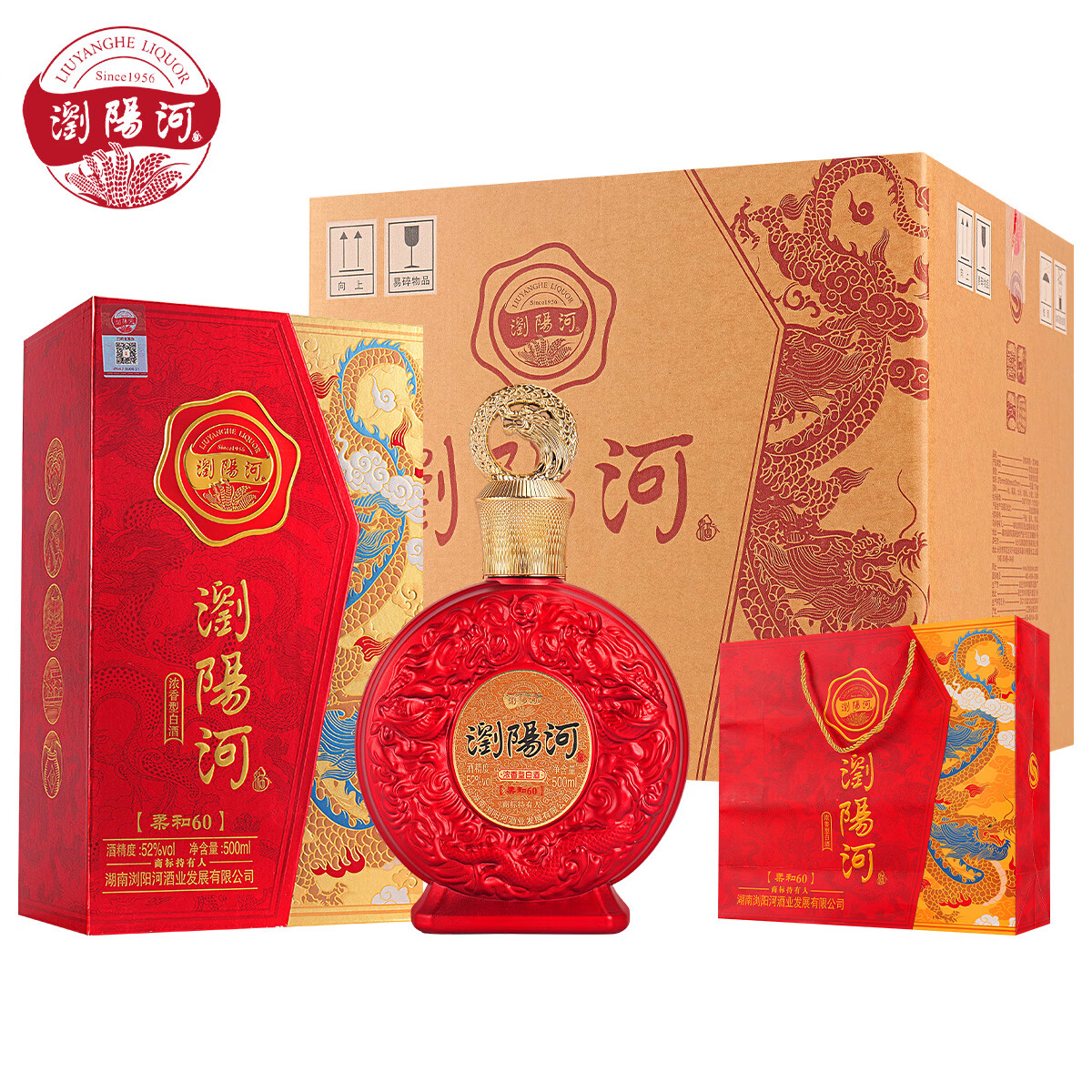 瀏陽河酒柔和60白酒整箱52度浓香型500ml*6瓶
