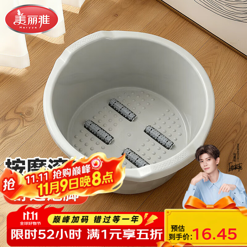 【仅需16.45】美丽雅 按摩滚轮泡脚盆 颜色随机