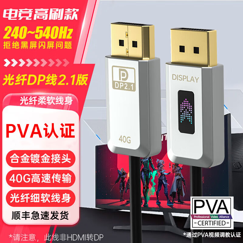 桥耐电竞DP线2.1合金版光纤高清线360Hz/4K240Hz高刷无损传输3090/4090显卡接显示器兼容1.4接口连接线 电竞款 15米