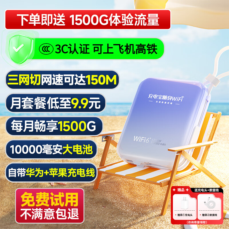 椰贝【30天免费试用】无线网随身wifi充电宝二合一移动随身wifi无限流量2025款5Ghz全网通出行必备神器 夕雾紫【顶配续航款】1万毫安48h续航高速150M