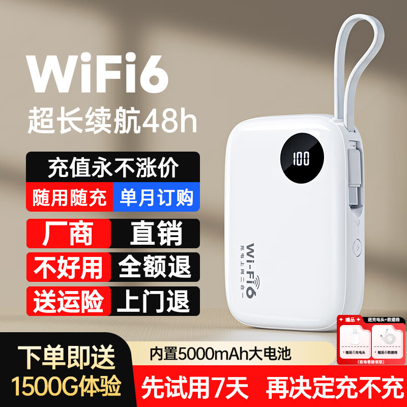 椰贝移动随身wifi5g无限流量2025款全国通用三网任切无线网随身wifi充电上网二合一车载宿舍直播不卡顿 【顶配充电宝款】5000毫安长续航48h+三网通