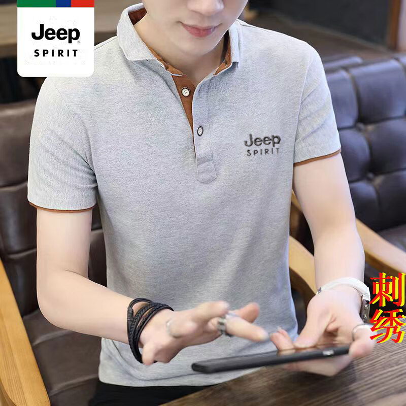 JEEP SPIRIT短袖t恤男P.O.L.O衫夏季休闲上衣翻领体恤大码男装半袖2024 7225墨绿色 3XL 建议170-185斤