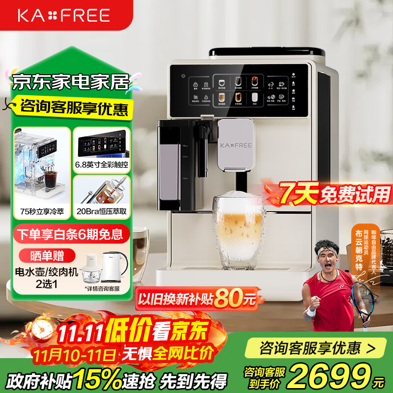 左左摩(ZZUOM)【八仓配送】咖啡机 家用半自动意式泵压式20Bar高压可打奶泡1.5升大容量水箱触控式大屏 黑晶触控大屏 20bar高压萃取