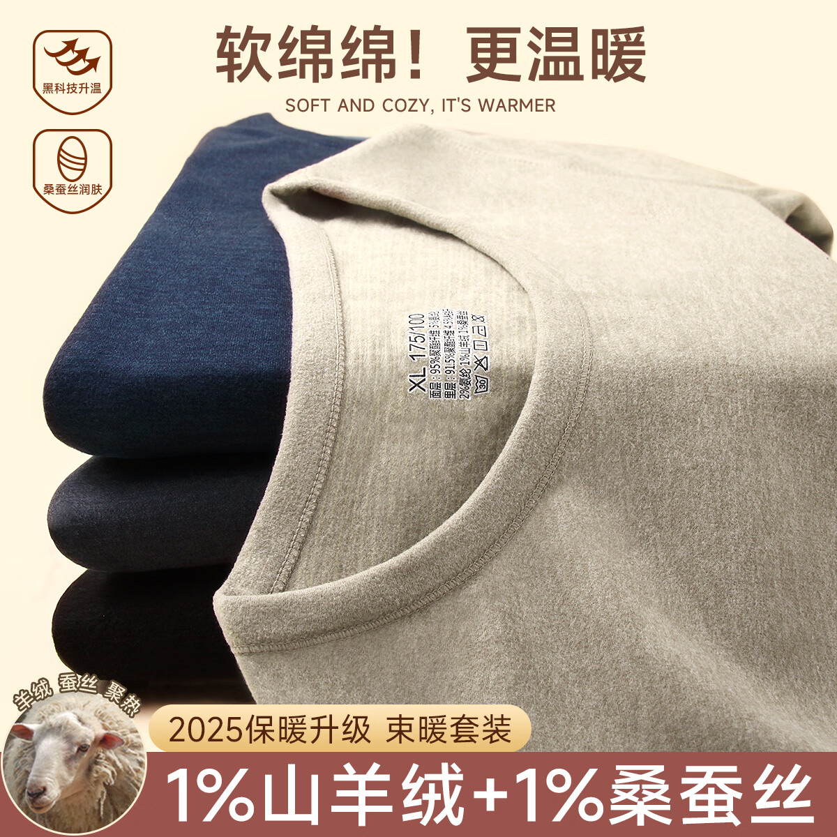 俞兆林无痕保暖内衣男女秋冬季新款羊绒桑蚕丝防寒恒温蓄热秋衣秋裤套装 黑色女款 【羊绒蚕丝保暖套装】 XL 女款100-115斤/男款110-130斤