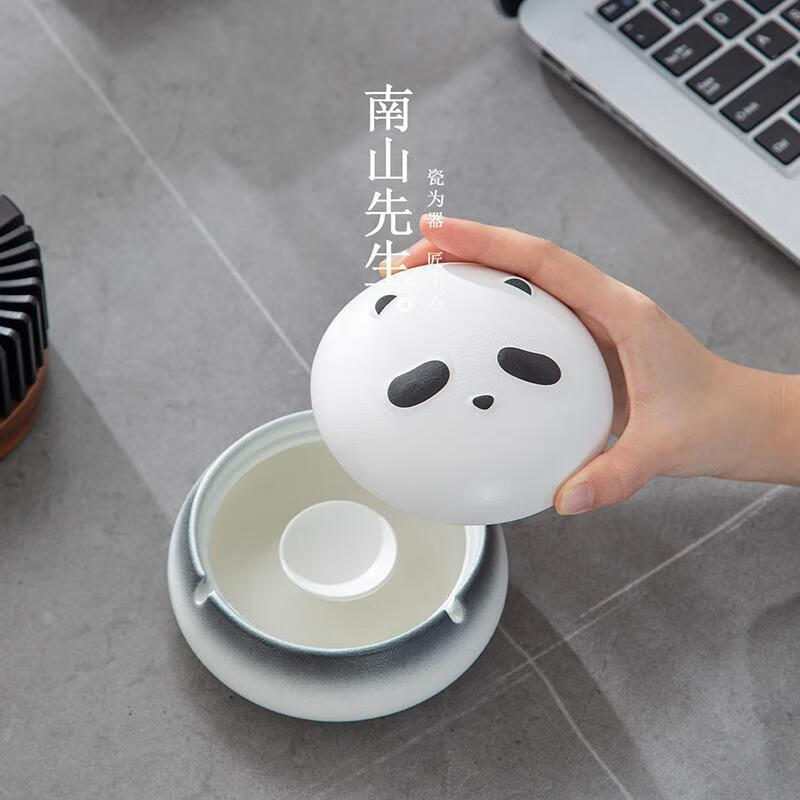 南山先生熊猫烟灰缸防灰飞个性创意家用