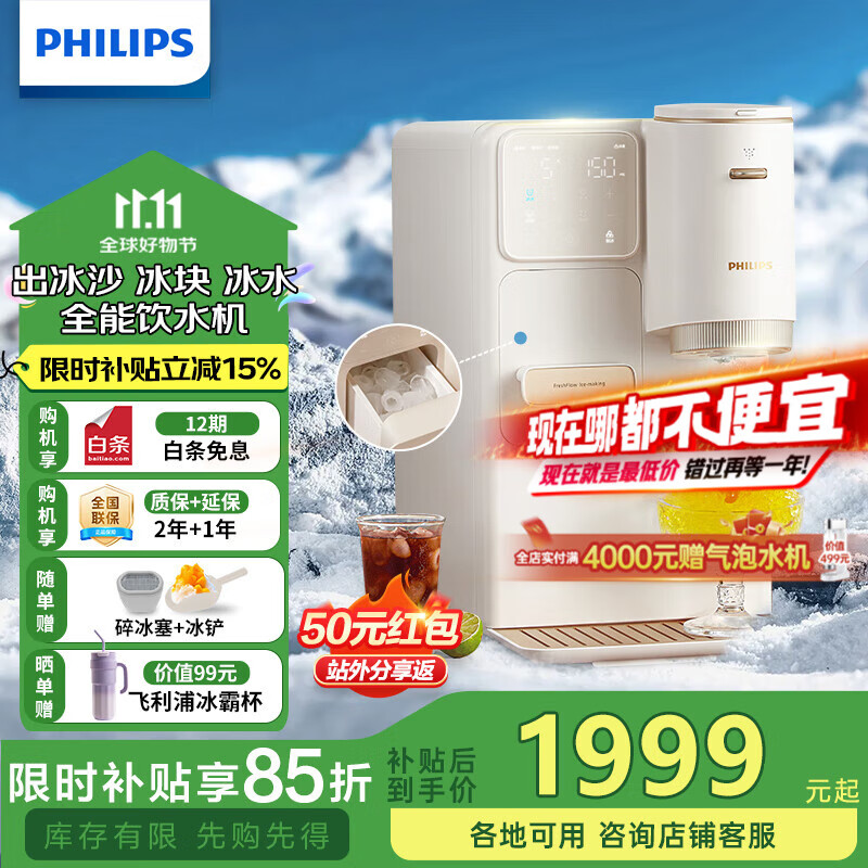 飞利浦(PHILIPS)制冰制冷即热式饮水机 制冰机刨冰直出冰沙冰块 免安装全能四合一饮水机冰境C1 七夕节礼物 即热制冷型 【制冰制冰沙】ADD8240/93