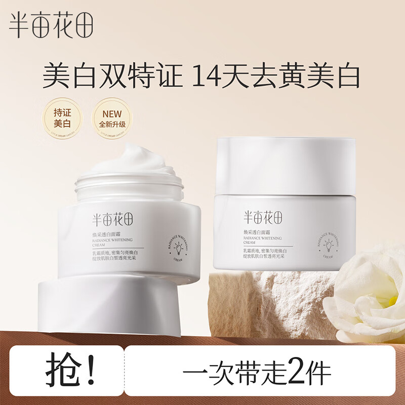 半亩花田焕采透白面霜50G 补水保湿美白淡斑烟酰胺乳霜护肤品女擦脸精华霜 焕采透白面霜50G*2瓶