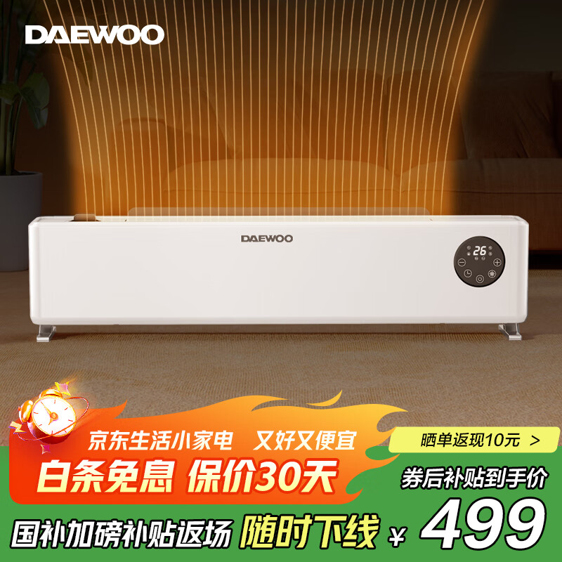 DAEWOO大宇踢脚线取暖器电热家用电暖气大面积速热暖风取暖炉石墨烯升温地暖智能恒温浴室卧室防水50平 【年度新品】石墨烯智能温控,轻音节能